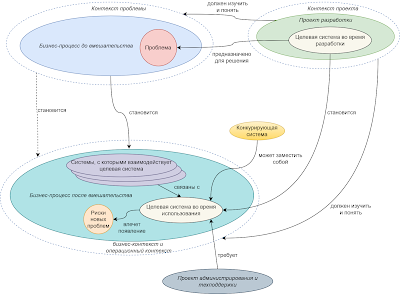 Ведь каждое решение надо создать, организовать людей, построить процессы разработки, производства, монтажа, интеграции, испытаний и тестирования, снабжения. И там будут свои пути и варианты, свой контекст. Проект МЦК и проект МЦД - это очень разные проекты. В системном подходе система, которая нужна для того, чтобы создать целевую систему, называется системой в обеспечении. Целевая система решает проблему, система в обеспечении создает целевую систему.